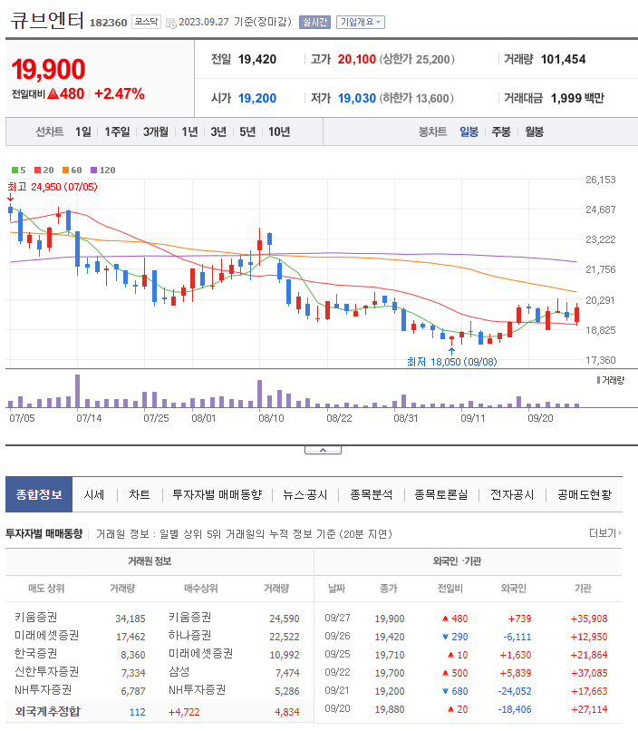 여자아이들의 선전에 힘입어서인지 현재 기관에서는 지속적으로 큐브엔터의 주식을 매집하고 있습니다.