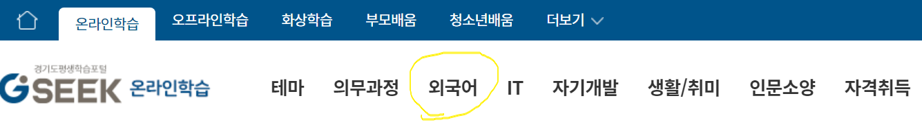 2. 검색하기 창에 '외국어'라고 입력을해서 엔터를 누르거나, 상단의 메뉴에서 온라인학습을 클릭후, 외국어를 선택한다.