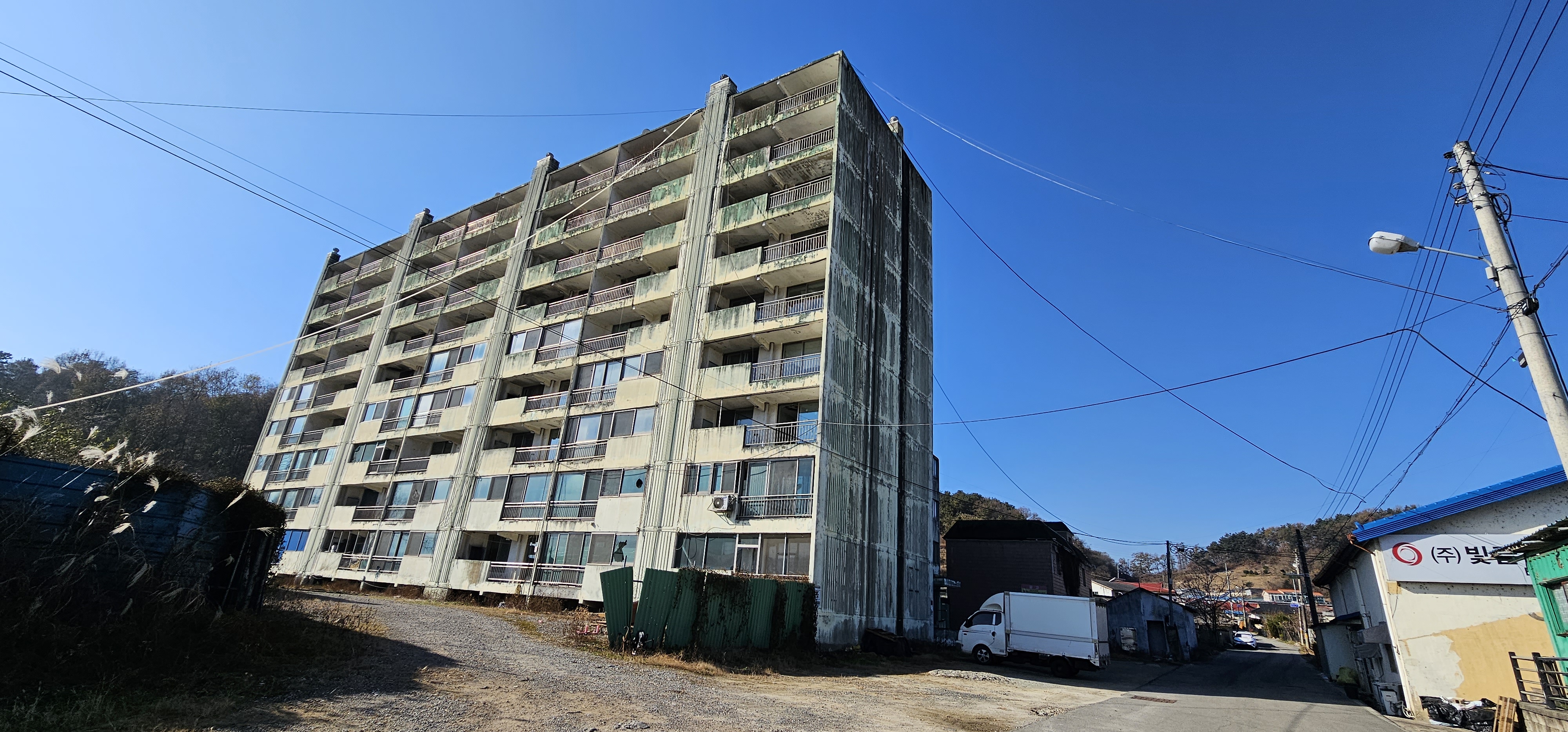 증평의 폐아파트는 무단출입을 허용하지 않는다는 현수막이 걸려있어서, 내부 복도까지는 가볼 수 없었다.