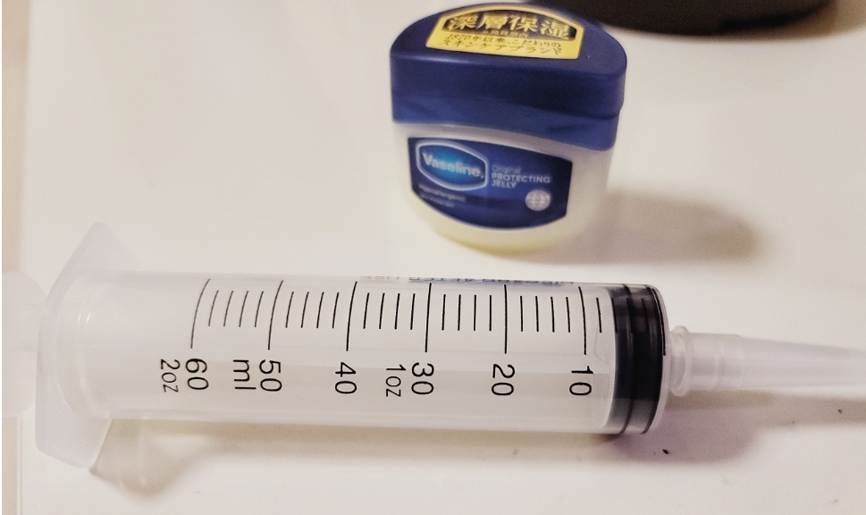2. 2-3시간이 지나도 아무런 소식이 없어보여서, 식염수를 데워서(미지근한 정도) 주사기로 주입을 시켰다.