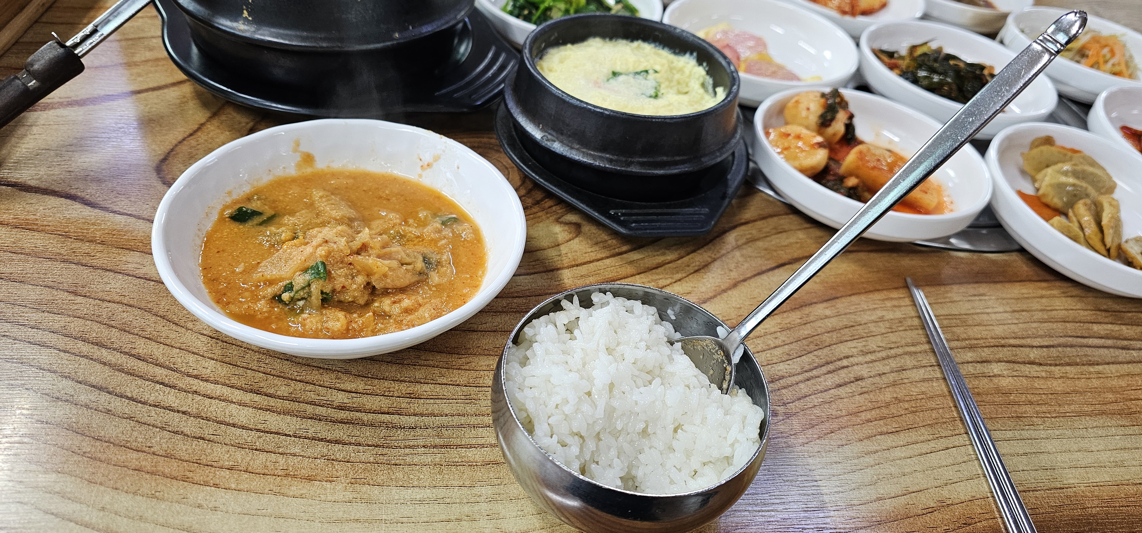 비지찌게를 제외한 찬이 총 11가지인데, 마치 집에서 차려지는 반찬들처럼 정겨운 메뉴들이 눈에 띈다.