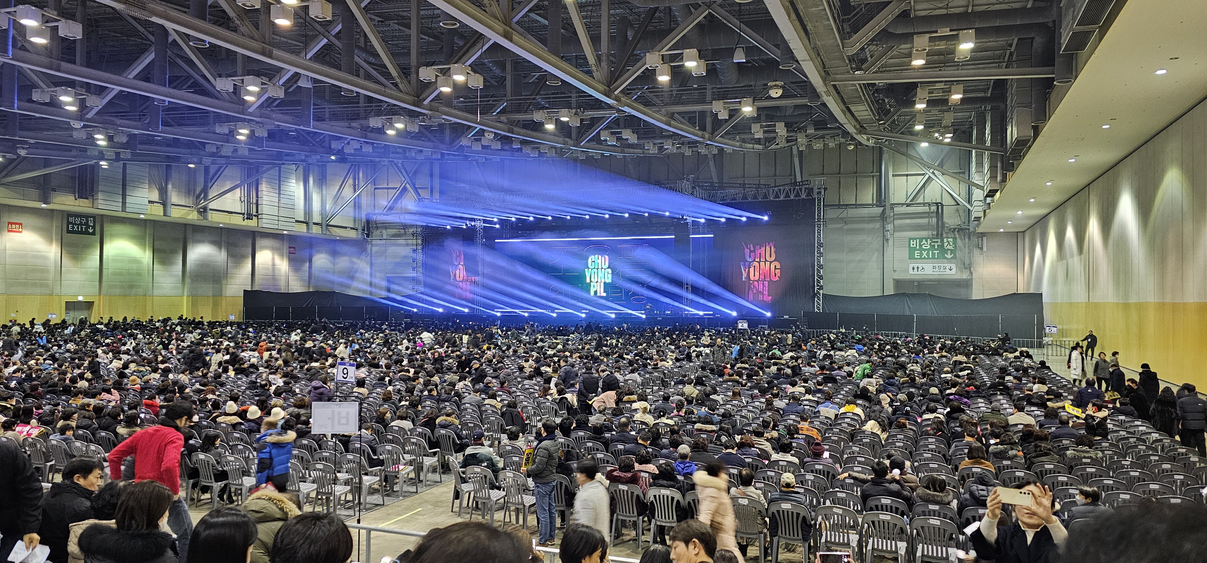 대구 콘서트때와 마찬가지로 부산콘서트에서도 조용필의 공연에 아주 만족을 했지만, 한가지 아쉬운점은 벡스코의 좌석 구조와 크기 ( 매우 협소하다 ) 때문이었다. 좌석이 너무나도 좁고, 일정 좌석의 좌우로 사람이 다닐 수 있는 공간을 터놓아야하는데 사방이 좁은 좌석으로 뒤덮혀있어서 한번 좌석에 앉으면 오도 가도 못하는 상황이 발생했다.