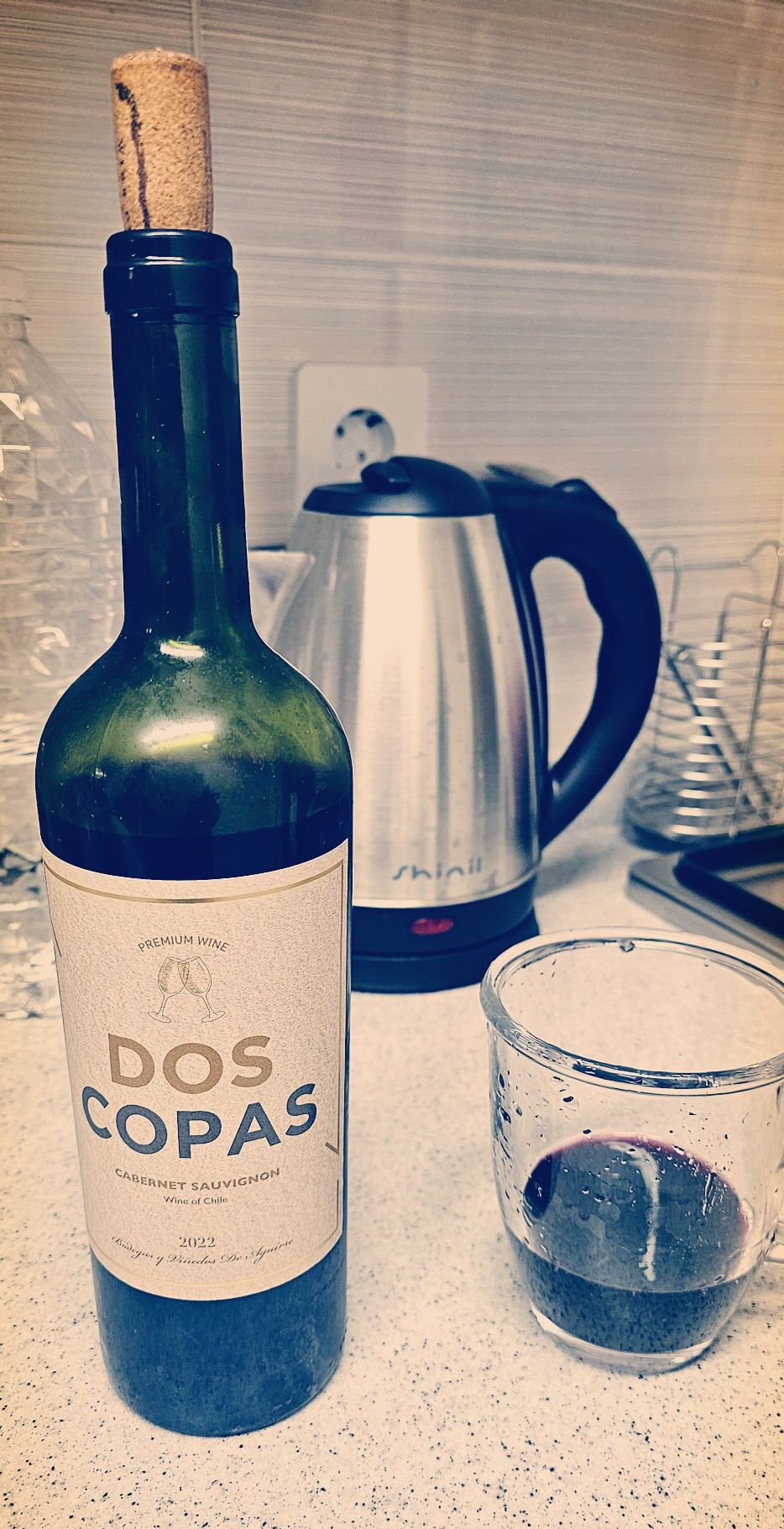 도스코파스 와인은 어느날 친구가 선물을 해주어서 마셔보았다가 가격에 놀라고, ( 4,900원이다! ) 지금까지 계속해서 마시게된 와인다. 1번에서 소개한 산타헬레나에 비하면 맛은 더 진하고 달지 않는 편이다. 도스코파스는 총 3가지의 라인이 있는데 그중에서도 카베르네 소비뇽은 달지않은 가성비 있는 와인을 좋아하는 사람들에게 추천하고 싶은 와인이다. 도스코파스는 칠레에서 생산되었으며 일조량을 많이 받은 품질좋은 포도로 만들어졌다고 하며 Dos Copas의 의미는 스페인어로 두잔이라고 한다. 도스코파스 카베르네 소비뇽과 어울리는 안주로는 치즈, 스테이크등이다.