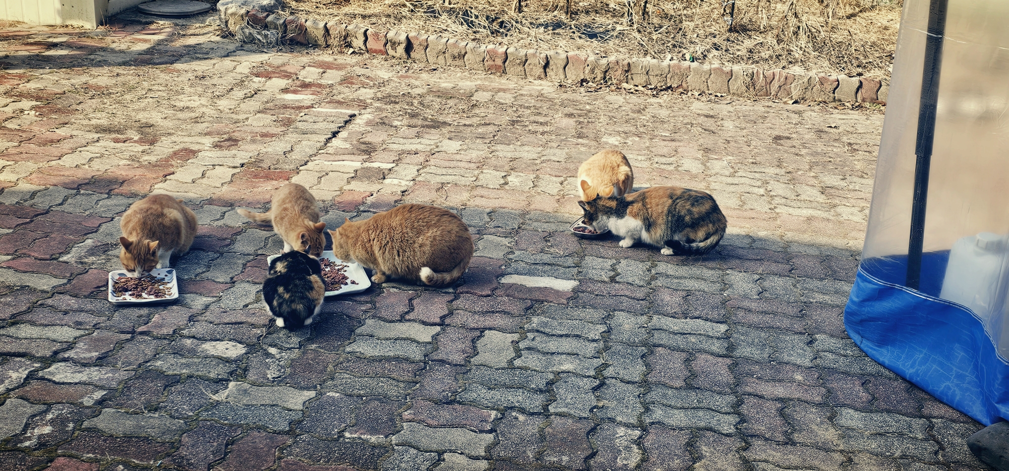 그런 상태로 하루가 지나고, 다시 통덫을 살펴보려고 바깥에서 볼일을 보고 고양이 사료가 있는 천막 ( 통덫을 설치한 곳)쪽을 가보았더니 그대로 빈 통덫만이 있었고, 집안으로 들어가려는 찰나...