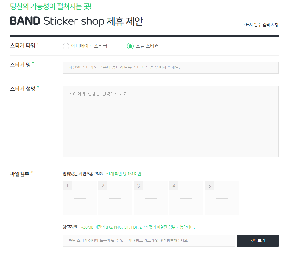 네이버 밴드 이모티콘 제안의 경우 카카오톡 이모티콘보다는 상대적으로 승인(채택)이 될 확률이 높은 편이지만, 내가 그린 그림들을 유료로 판매하는 시장인 만큼 완성도 있고 개성이있는 나만의 그림체와 훈련을 어느 정도 거친 그림실력이 요구된다.