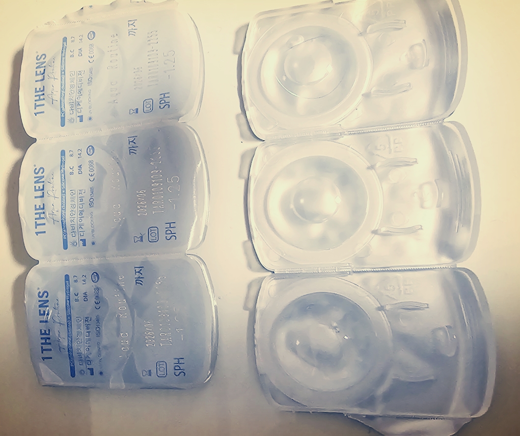-1.25의 도수였고 렌즈를 착용하면 예전에 착용했던 다회용 렌즈보다는 착용감이 가볍다는 느낌이 들지만 말그대로 원데이 렌즈이기때문에 한번 끼면 재사용을 할수가 없다.
