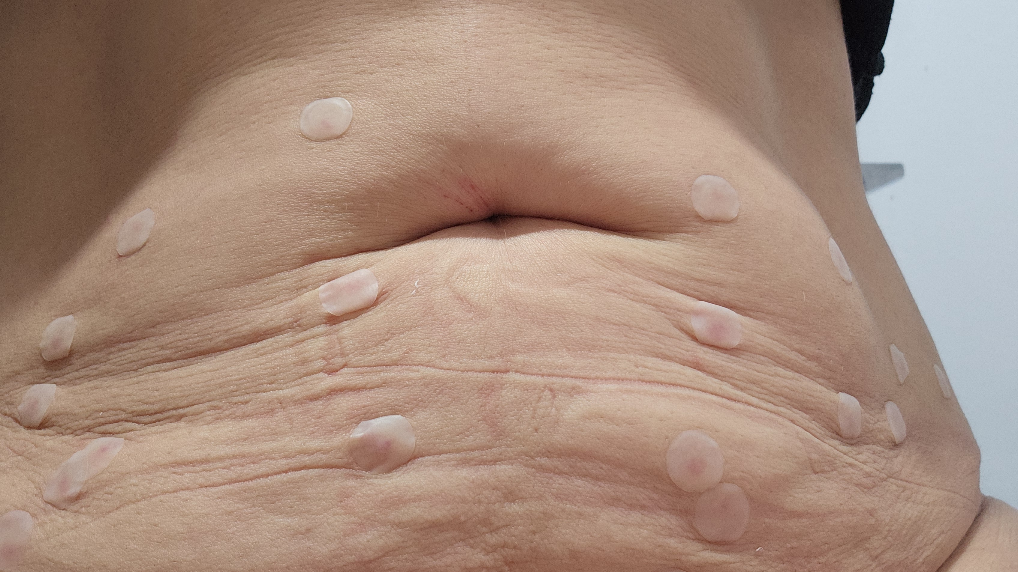 복부지방분해주사를 맞기전 마취크림을 바른후 약 20분간 방치를 하여서 마취크림이 흡수되도록 기다린후, 의사 선생님께서 직접 주사를 놓아주시는데, 배꼽을 기준으로 양쪽 복부에 약 10대의 주사를 맞아서 약물을 중입한다.
