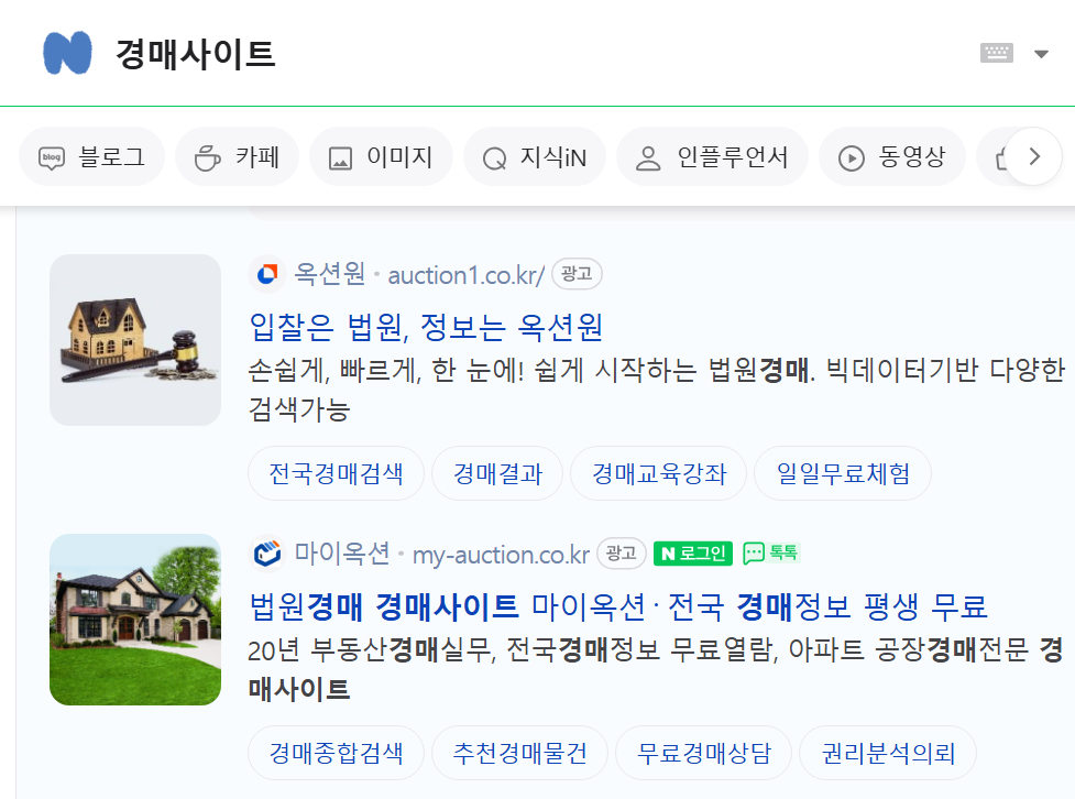 * 경매정보를 얻는 법 - 포털검색엔진에서 '경매사이트'라고 검색을 한다.