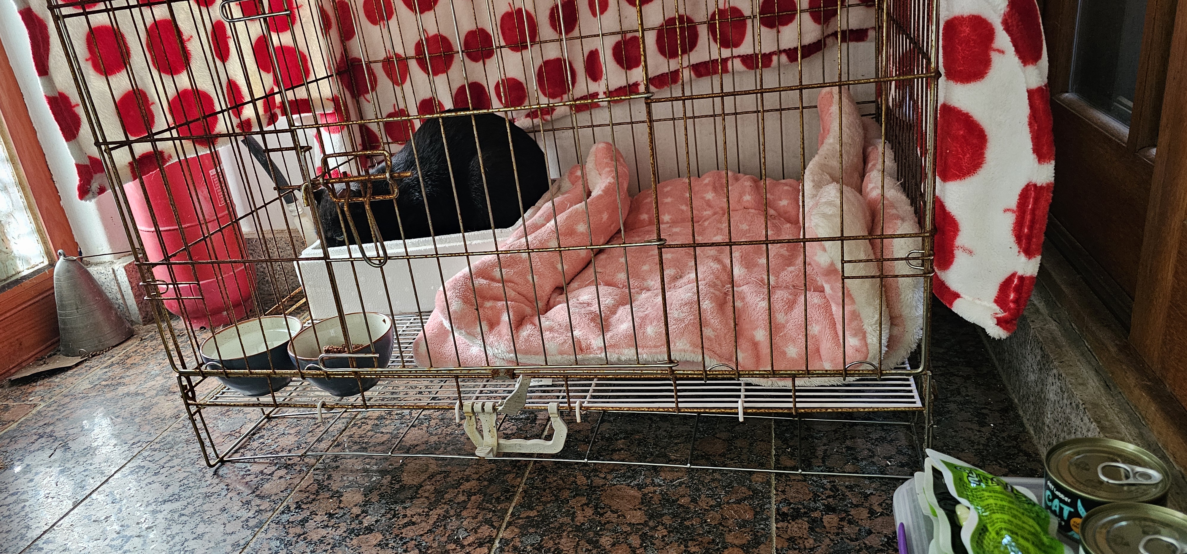 암컷 고양이이다보니 tnr수술후 집에서 케어를 해준후 원래 있던 자리로 방사를 해주면 되는데, 그 사이에 몸이 점점 회복되어 가는 고양이는 큰 소리를 냐옹거리면서 밖으로 꺼내달라고 난리이다. 이때는 어린 아기처럼 어르고 달래고, 맛있는 간식과 사료를 잔뜩 넣어주는데 보통은 몇 시간 동안 먹지 않고 고양이는 경계심으로 가득차있다.