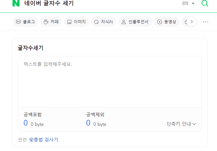 따라서 글자수 세기는 글쓰기의 가장 기본적인 지침이라고 할 수 있는데 공백을 제외한 글자수를 카운팅하는 툴로서 가장 광범위하게 쓰이는 도구는 네이버 글자수 세기이다. 이를 사용하기 위해서는 네이버 검색창에서 '네이버 글자수 세기'라고 검색을 해서 들어가면 된다.