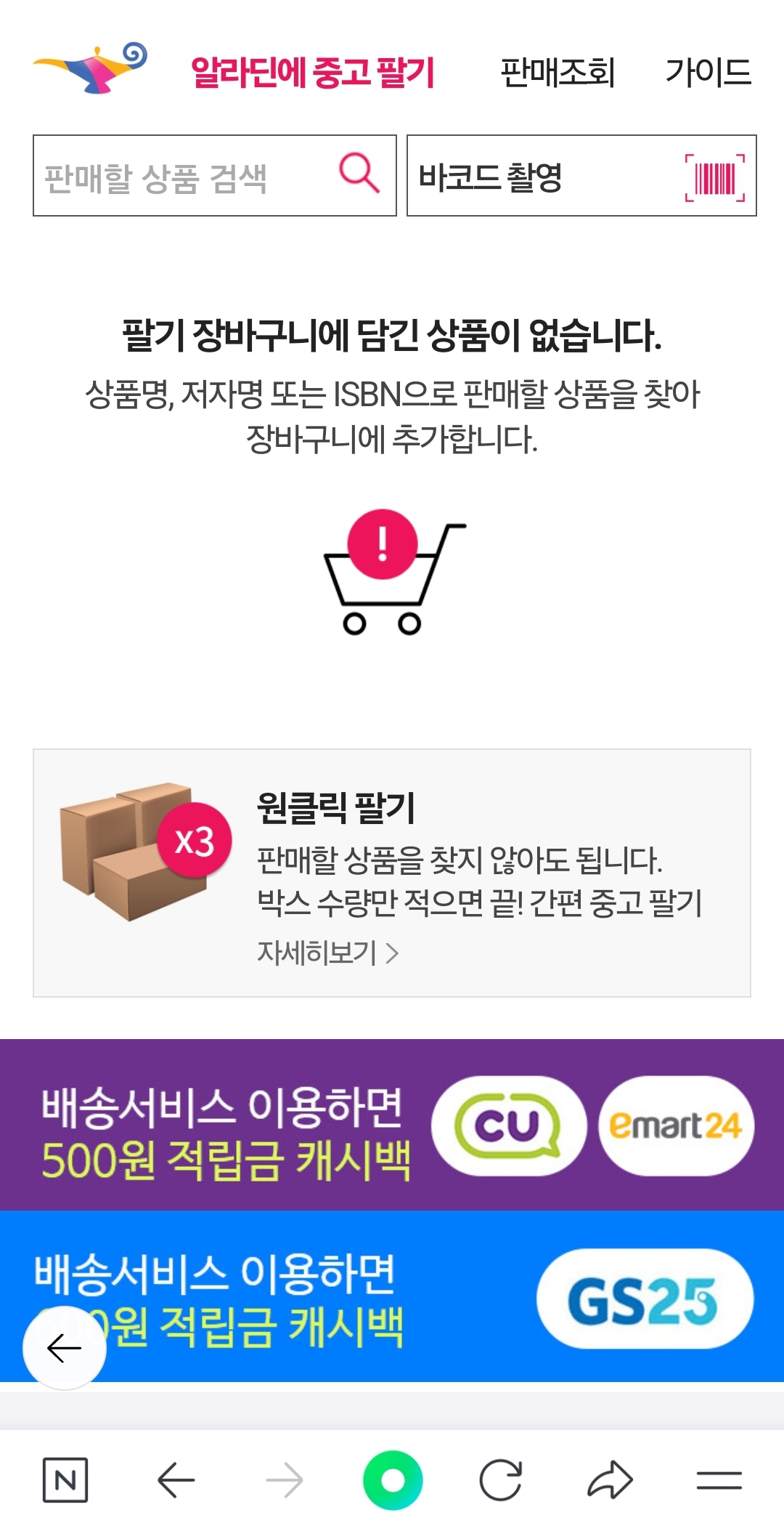 * 알라딘에서 매입을 해주는 도서인지 여부를 미리 검색해서 매입가능하다고 나오는 책만 가지고 가도록 하자.