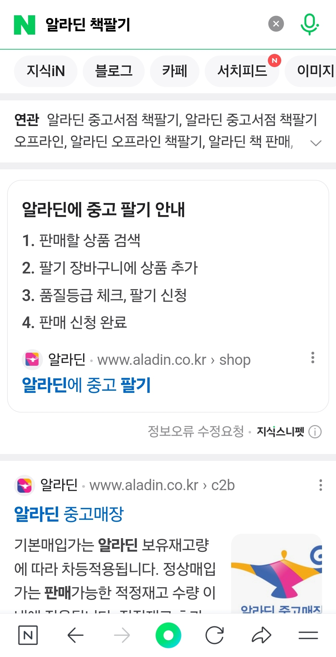 우선 네이버에서 '알라딘 책팔기'라고 단어를 검색하면 알라딘에 중고팔기라는 싸이트가 나온다.