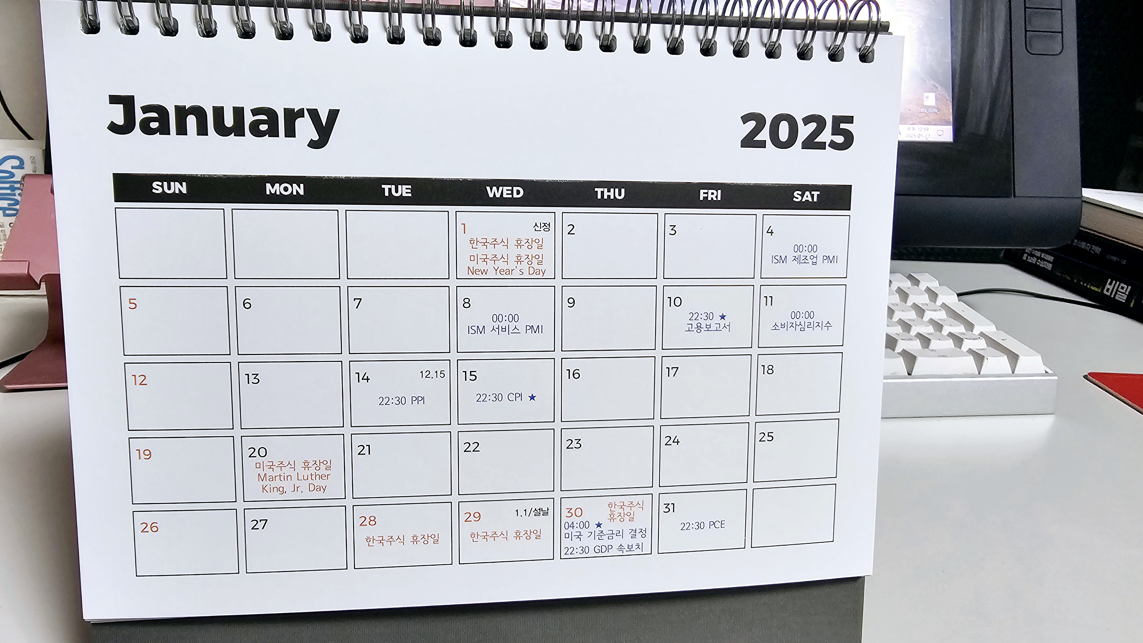 2025 주식 탁상 달력 미국 증시 일정 캘린더 - 데스크 캘린더 | 쿠팡