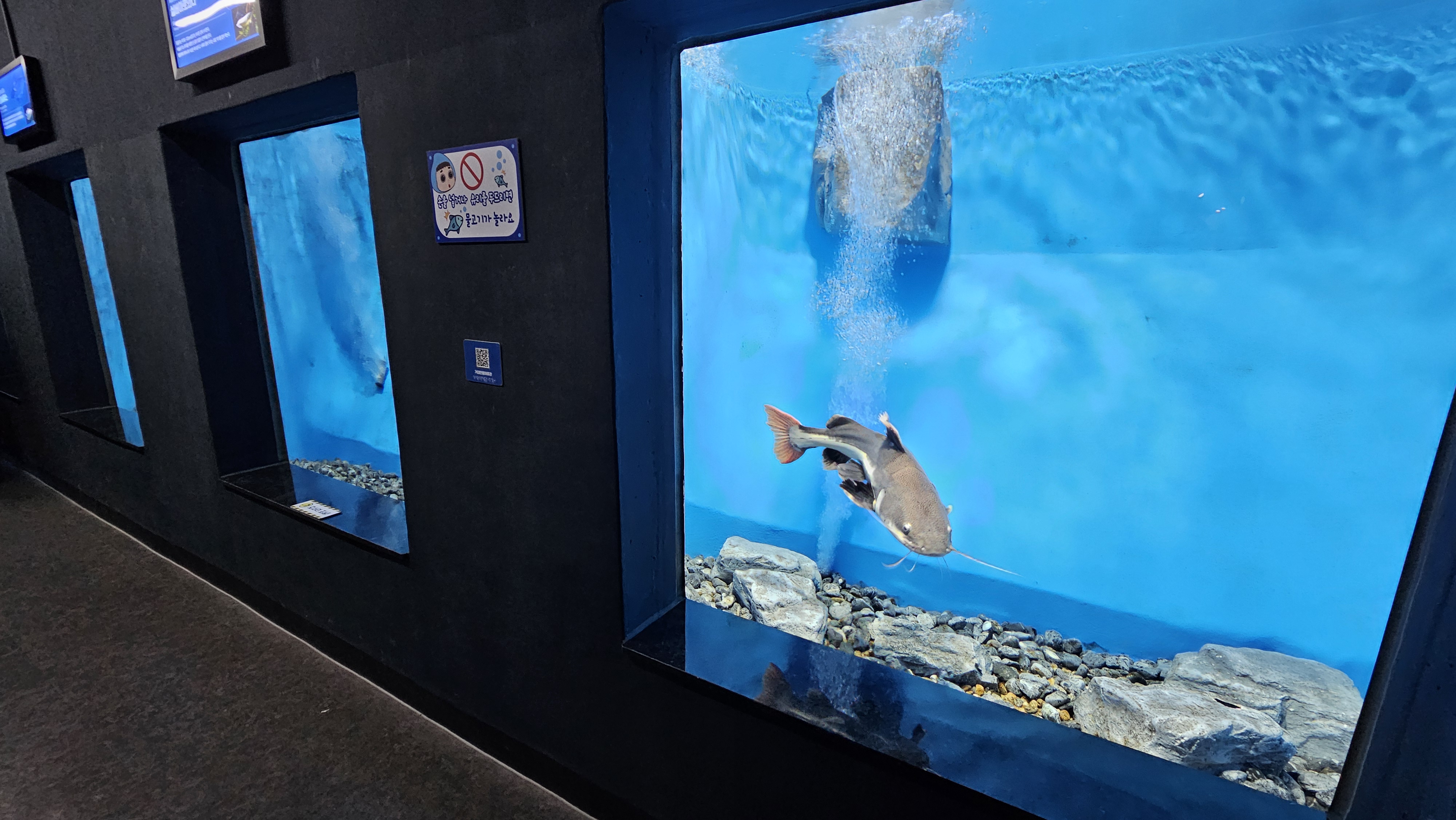 쏘가리 전시관을 구경한 후에는 본관인 아쿠아리움으로 가서 구경을 했는데, 무료 입장이라고 하기에는 시설과 전시관의 수준이 매우 훌륭했다.