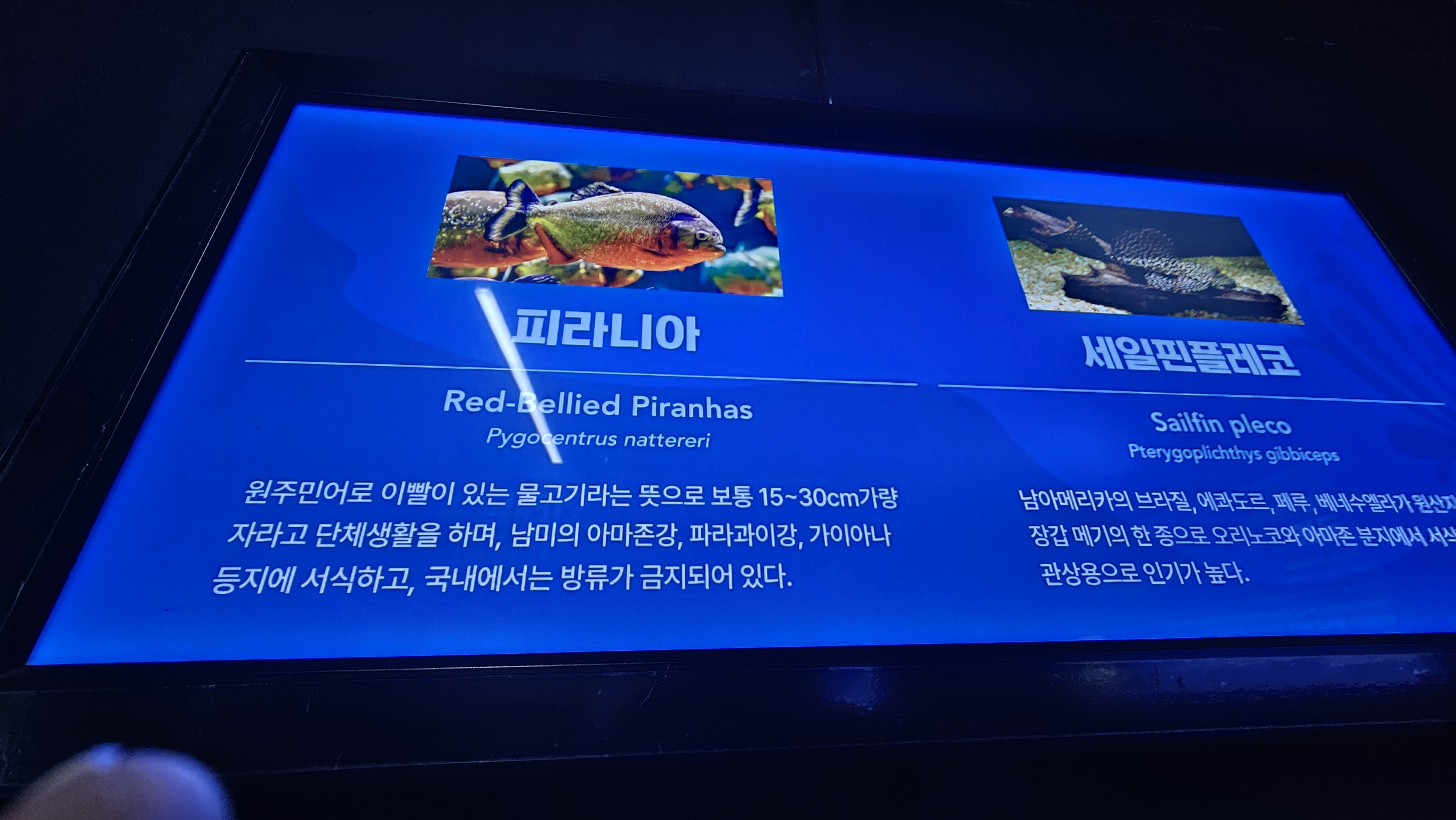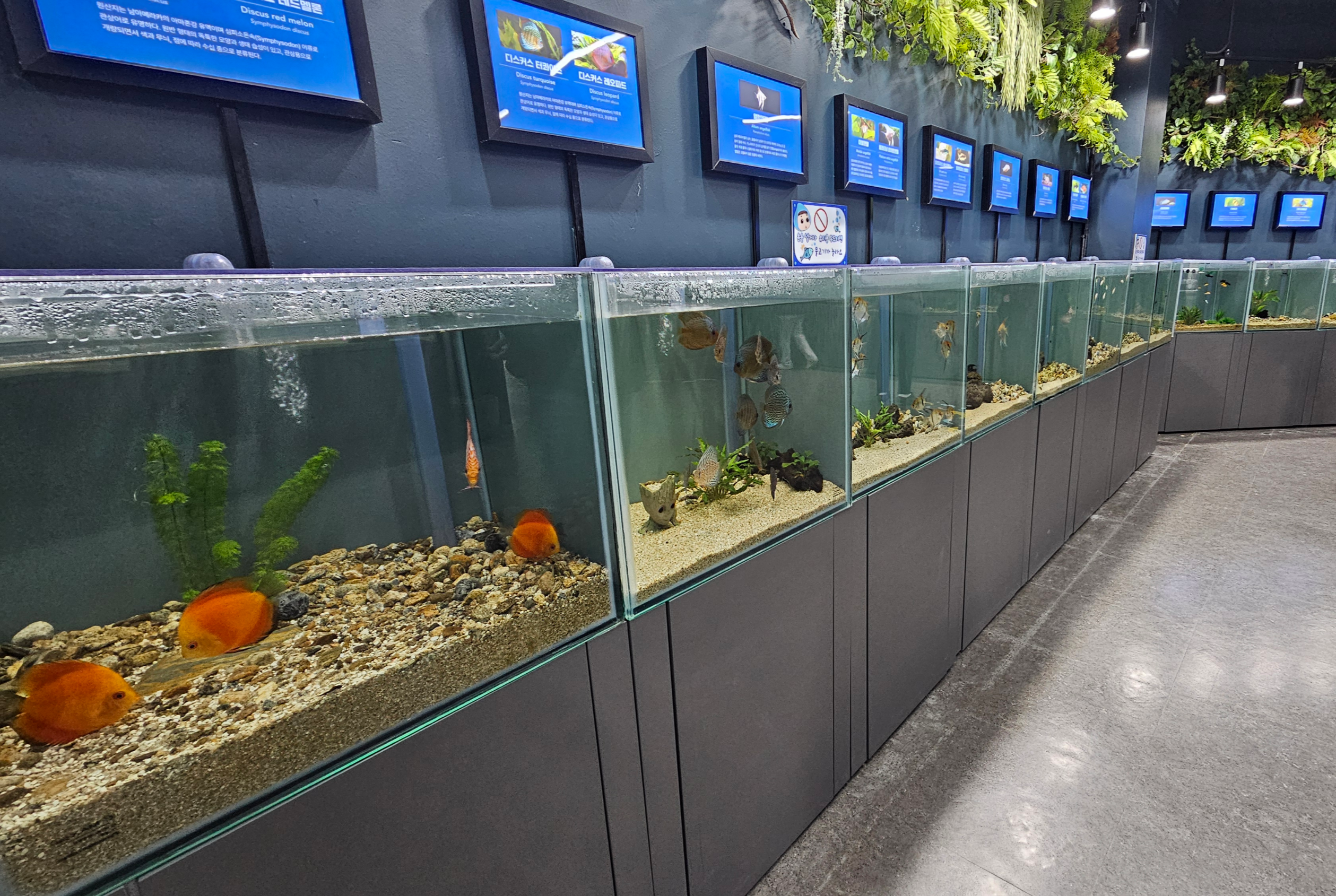 아마존강등 해외에서 서식하는 낯선 어류들부터 유명하면서도 친숙함이 있는 열대어까지 아주 다양하고 화려한 어류들이 전시되어 있었다. 수족관과 어류에 대해서 큰 관심이 없었던 나도 정말로 자세하게 들여다 보고 싶을 만큼 흥미롭고 멋진 전시관이었다.
