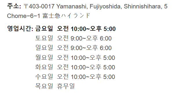 - 운영 시간: 후지큐 하이랜드와 전율미궁의 운영 시간은 계절 및 요일에 따라 다를 수 있으므로 방문 전에 공식 웹사이트에서 확인하시기 바랍니다.