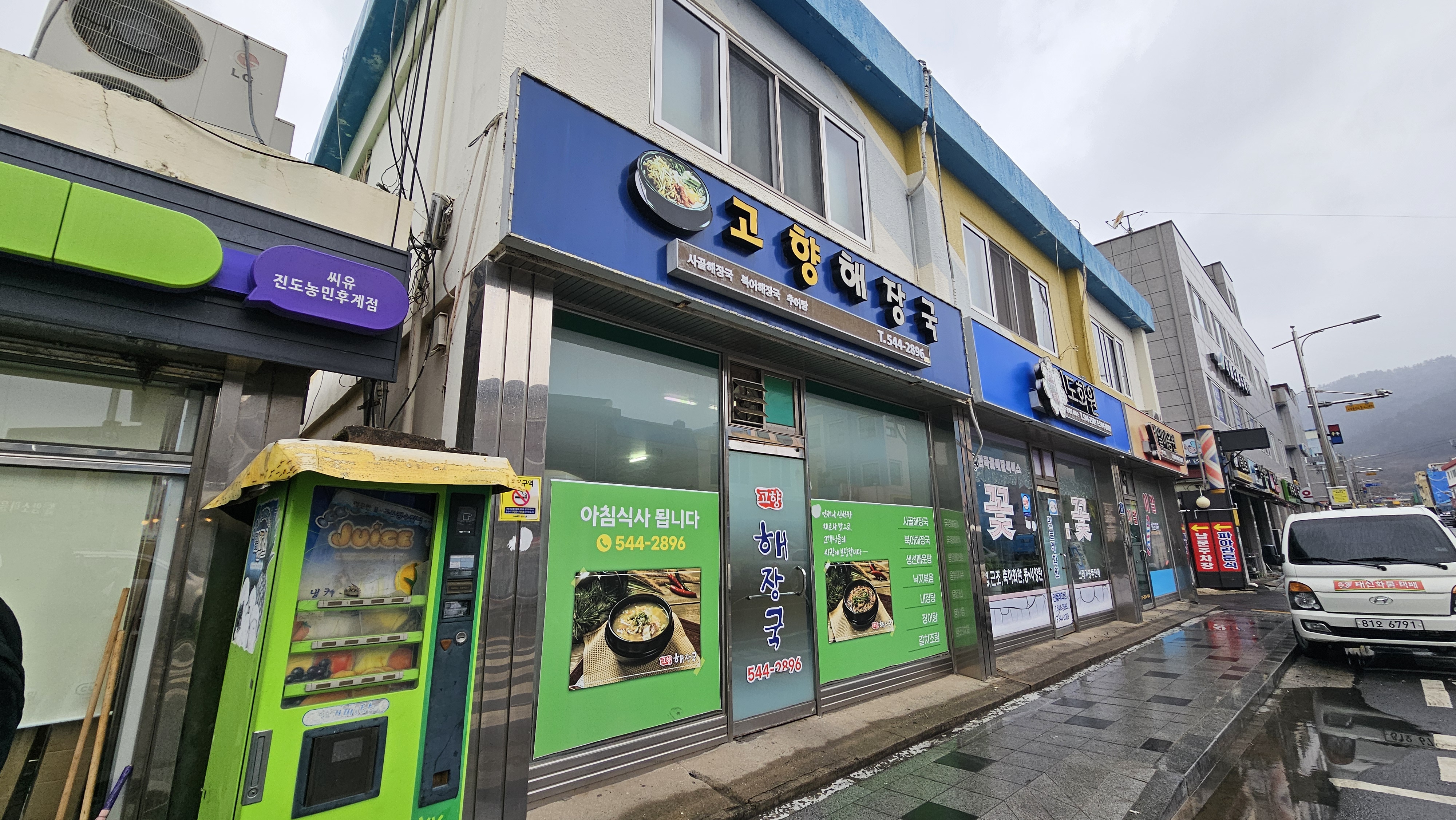 네이버 지도를 열어서 찾아간 식당들은 영업중이라고 표시가 되어 있음에도 불구하고 문을 열지 않은 곳이 많다보니 계속해서 진도 시내를 뺑뺑이돌다가 찾아간 곳이 바로 고향해장국이다. CU편의점 옆에 있는 작은 해장국집인 고향해장국. 여러번 헛탕을 친 터라서 문을 열었다는 것 만으로도 우리 일행은 반가운 마음으로 식당 안으로 들어갔다.