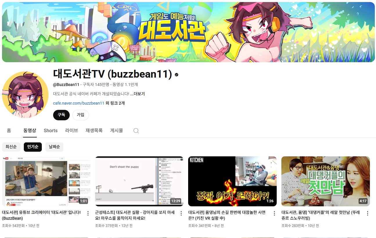 유튜버가 활성화되기 이전, 초창기 시기인 2002년부터 인터넷 방송 활동을 시작하여 20년 넘게 활발히 활동을 해온 대도서관은 두꺼운 팬층을 확보하고 있는 145만 구독자를 보유한 대형유튜버이다. 한창 방송활동을 활발히 하기도 하면서 1세대 유튜버로서 유명세를 누렸던 대도서관의 당시 수입은 수천만원에서 1억원을 훌쩍 넘었다고 한다.