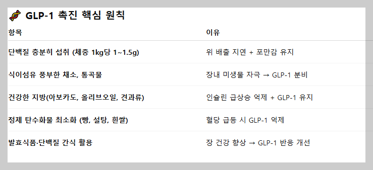 이 호르몬은 단백질·식이섬유·건강한 지방 위주로 식사할 때 가장 잘 분비되며, 혈당이 천천히 오르는 식단이 핵심이다.