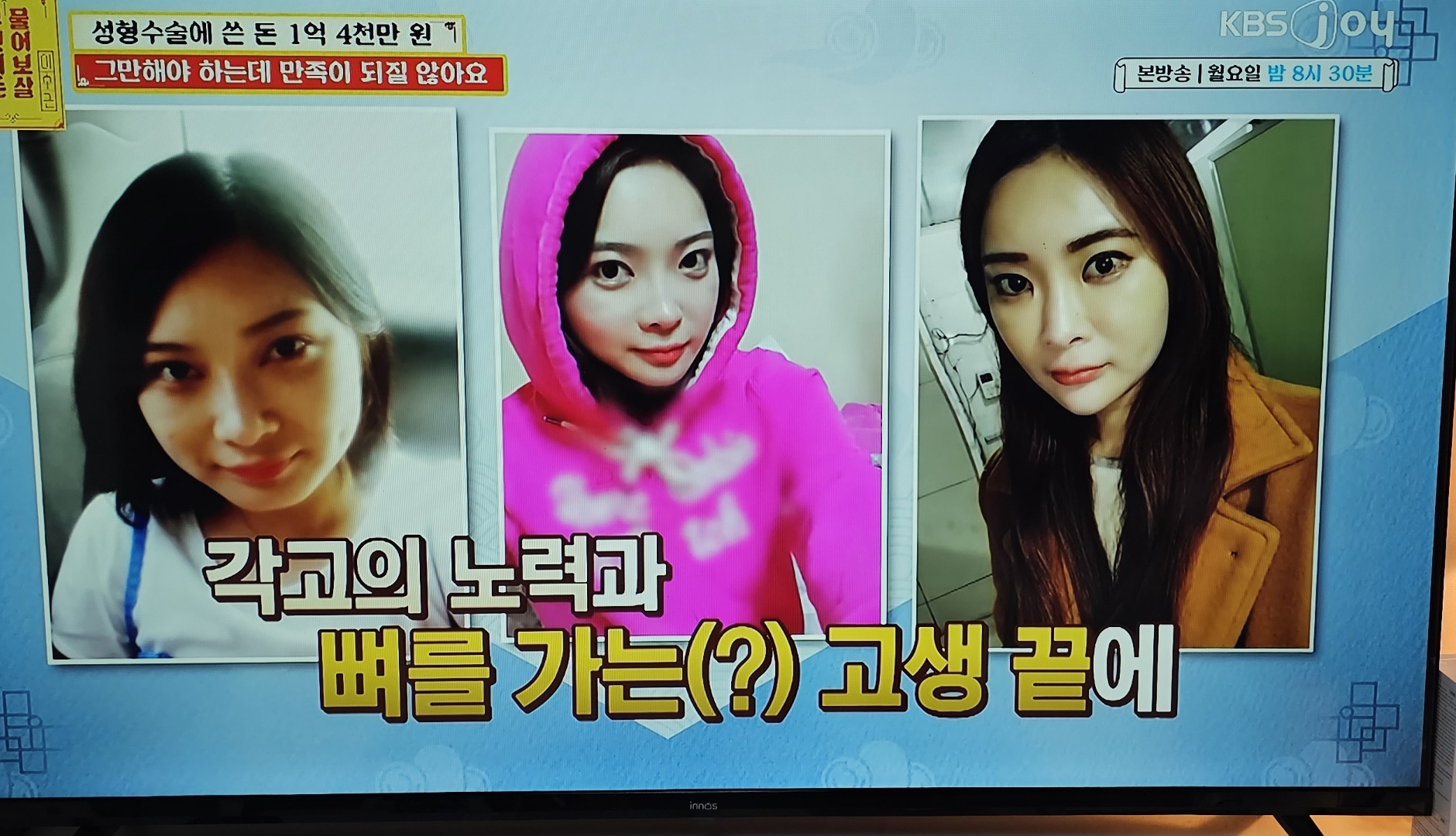 이 여성분의 사연이 방영이 된지는 꽤 오래전이지만, 얼마전 유튜브에서 추석특집으로 레전드편으로 편집본을 올려서 다시 시청하게되었다. 그녀가 얼굴 성형에 쓴 돈은 1억하고도 4천여만이라고 하는데, 사연의 주인공은 역시나 잦은 수술로 인해서 매우 부자연스러운 인상을 소유하고 있었다.