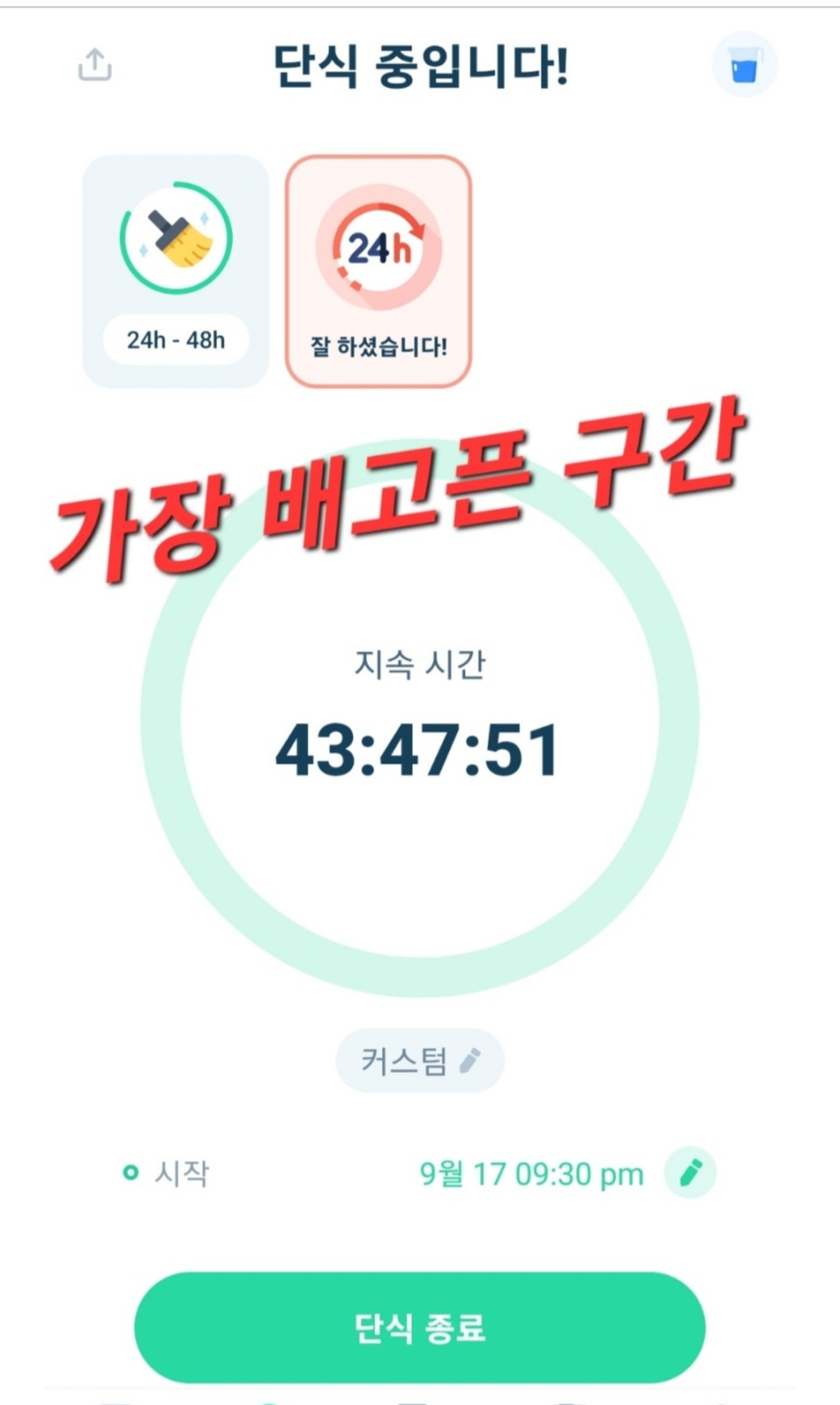 단식추적기 어플을 수시로 열어보면서 한 시간, 한 시간이 빨리 지나기를 카운팅해나갔다.