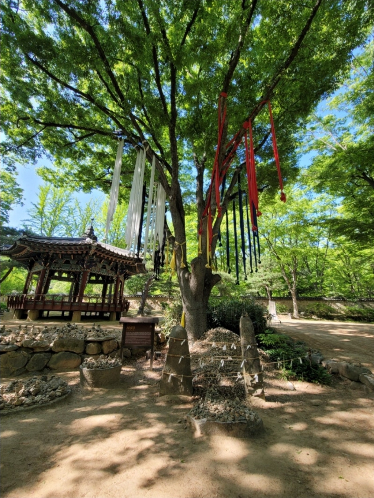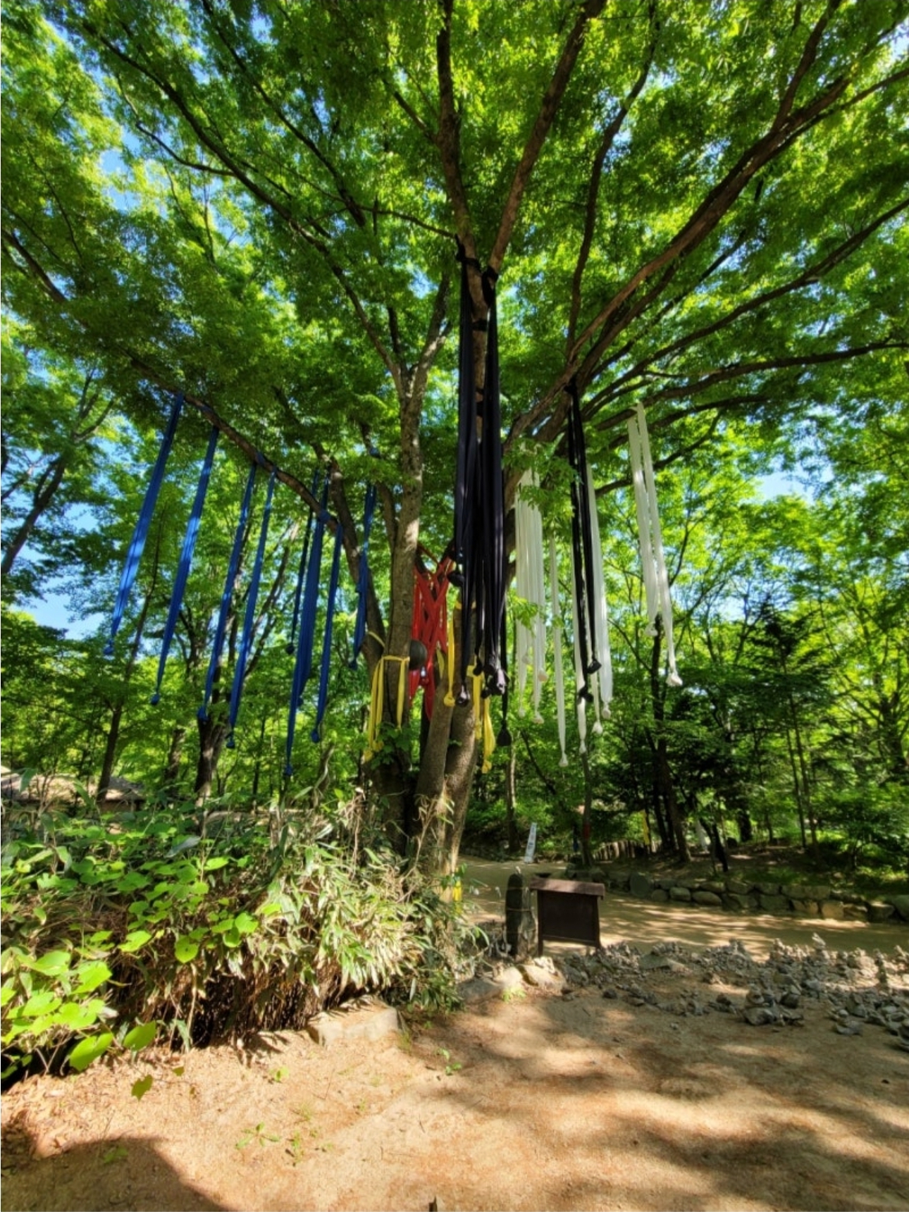 큰 나무에 울긋 불긋한 줄들이 메달려있는데