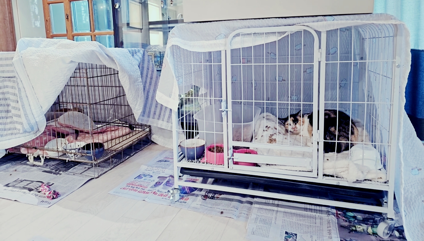 그리고 마취에서 깨어난후 놀랄 고양이들을 안정시키기 위해서 케이지의 3면 정도를 이불이나 천으로 가려놓도록 한다.