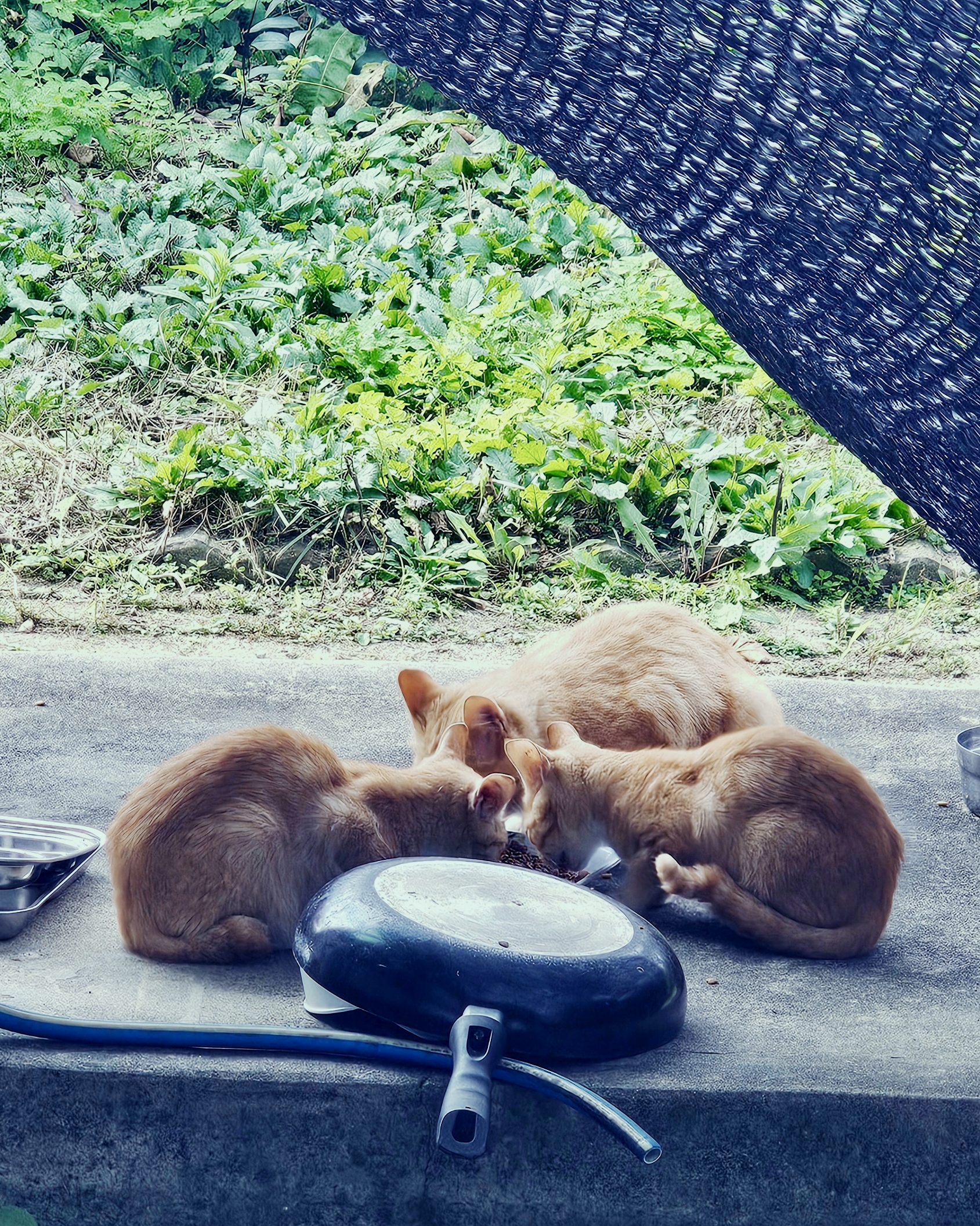 100여평이 넘은 넓은 마당에 길고양이들의 자율 급식소를 만들어주고,