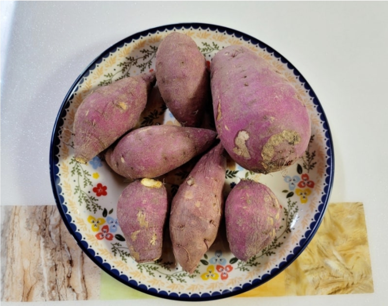 고구마는 텃밭에서 직접 농사 지은 것으로 준비했답니다. 꿀고구마 모종을 키워서 수확한 것인데, 크기는 작지만 정말로 맛이 좋아요!