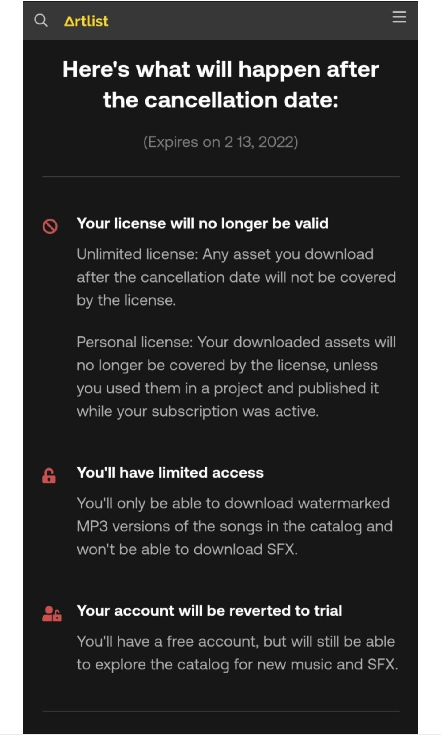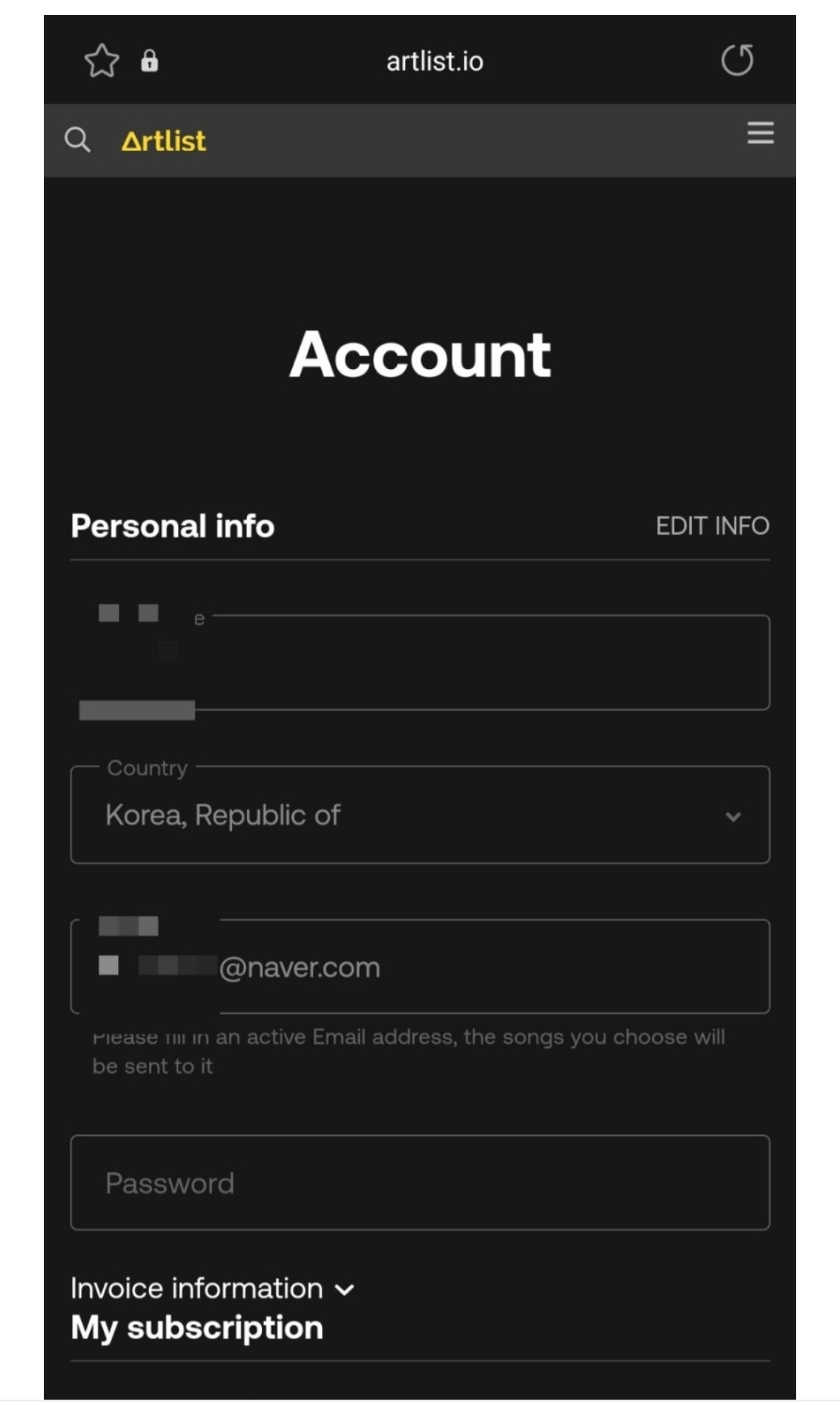 해외 유료 음원사이트인 #아트리스트 (artlist)를 구독 신청했으나 당분간은 쓸 일이 없을 것 같아서 구독 취소를 하게되었는데요, 매달 자동 결제 되는 일이 없도록 싸이트에 들어가서 구독 취소를 진행해야 합니다.