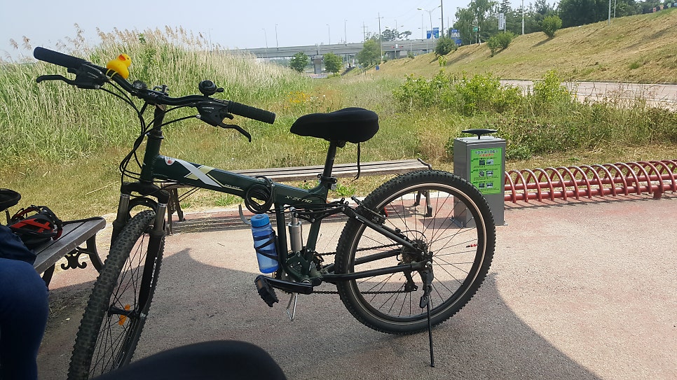 처음에는 동네 한바퀴를 돌았고, 인근 자전거길에서 1-2시간씩 타다가 점점 라이딩를 하는 시간이 늘어나게되었다. 자전거 라이딩을 할때에는 물통을 꼭 준비해서 자전거의 물통 거치대에 장착을 하고 출발을 하면 든든한 마음이 든다.