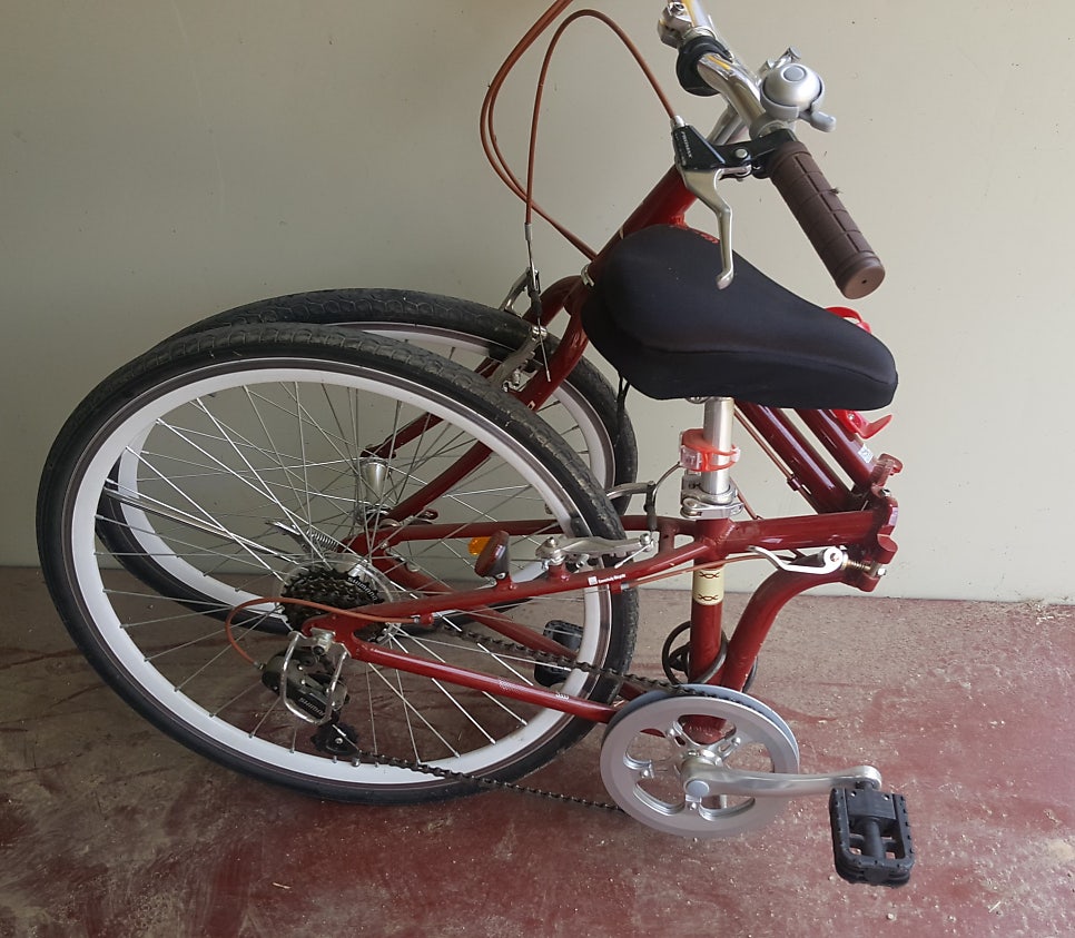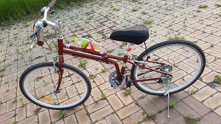 접이식이라서 반으로 자전거를 접으면 차에 쏙 들어가는 슬림함이 마음에 들었고, 빨간색의 컬러가 무척이나 예뻐서 여성들이 타기에 제격인 모델이다.