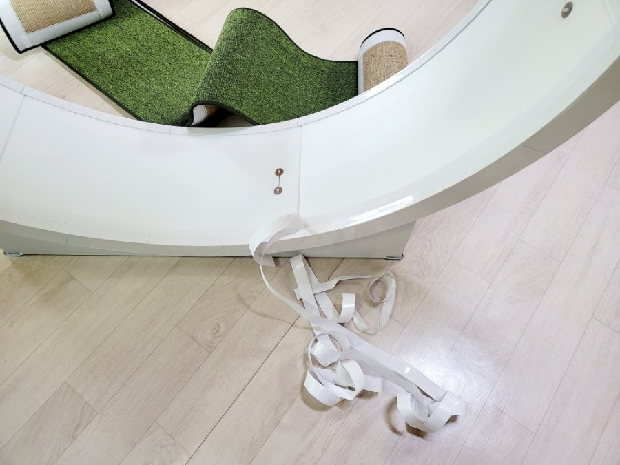 예민한 고양이들을 위해서, 캣휠의 바퀴 소음을 축소시킬 수 있는 소음방지부직포도 바퀴에 붙여준다.