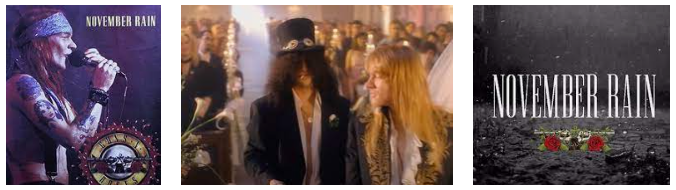 특히 Axl Rose의 자작곡 November rain의 유튜브 조회수는 곧 20억회를 앞두고 있다해마다 11월이 되면 전세계에서 수많은 선곡 요청을 받는 곡중의 하나가 November rain일 것이다. Axl Rose가 단독으로 작사, 작곡한 November rain은 무려 10여년 동안이나 제작되었다고 한다. ( Guns N Roses의 공식 유튜브 채널에서 November rain의 원곡 버전을 들을 수 있다. )