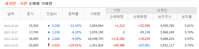 인보사의 성분 논란으로 인하여 증권시장에서 거래정지를 맞았지만, 다시 거래가 재게되었고 미국에서 임상 3상을 진행중이라는 것은 코오롱티슈진의 기업가치나 독보적인 기술력과 오랜 기간동안의 연구들이 미국에서 인정을 받고 새로운 줄기 세포 치료제를 발표할 확률이 높은 바이오 회사라는 점에서 긴 바닥을 다지고나면 연구실적과 시장에서 평가하는 기업 가치를 인정받으며 점진적으로 상승의 방향으로 전환되지 않을까 하는 조심스러운 관측을 해본다. 코오롱 티슈진의 시가총액은 1조 678억이며, 외국인 지분율은 5.76%이다.