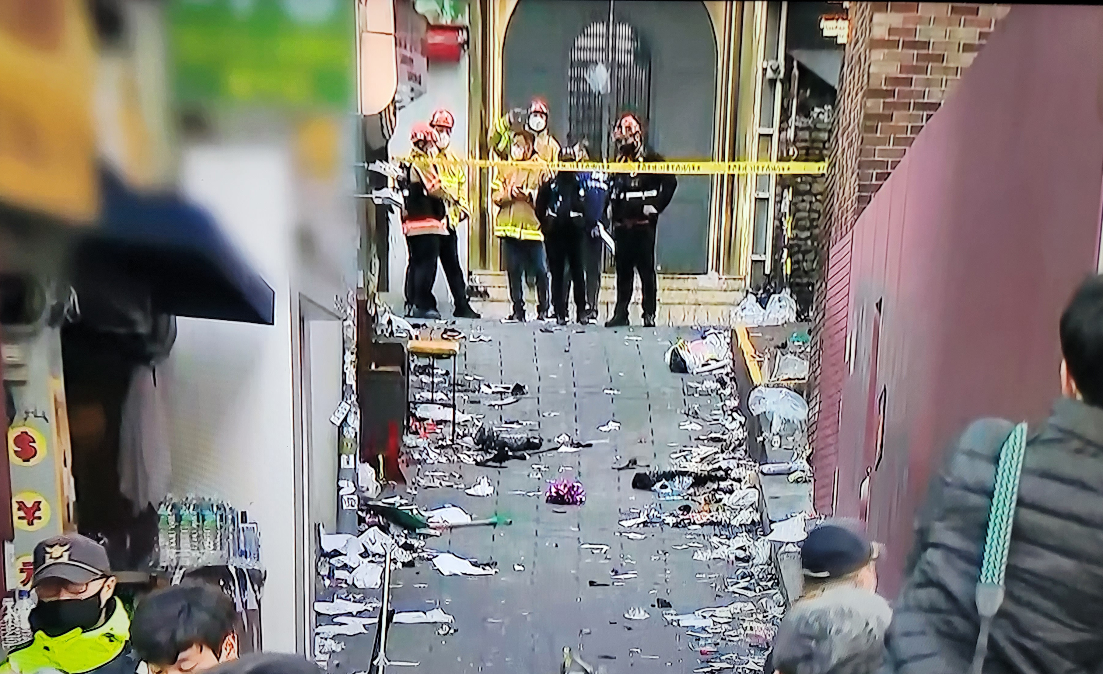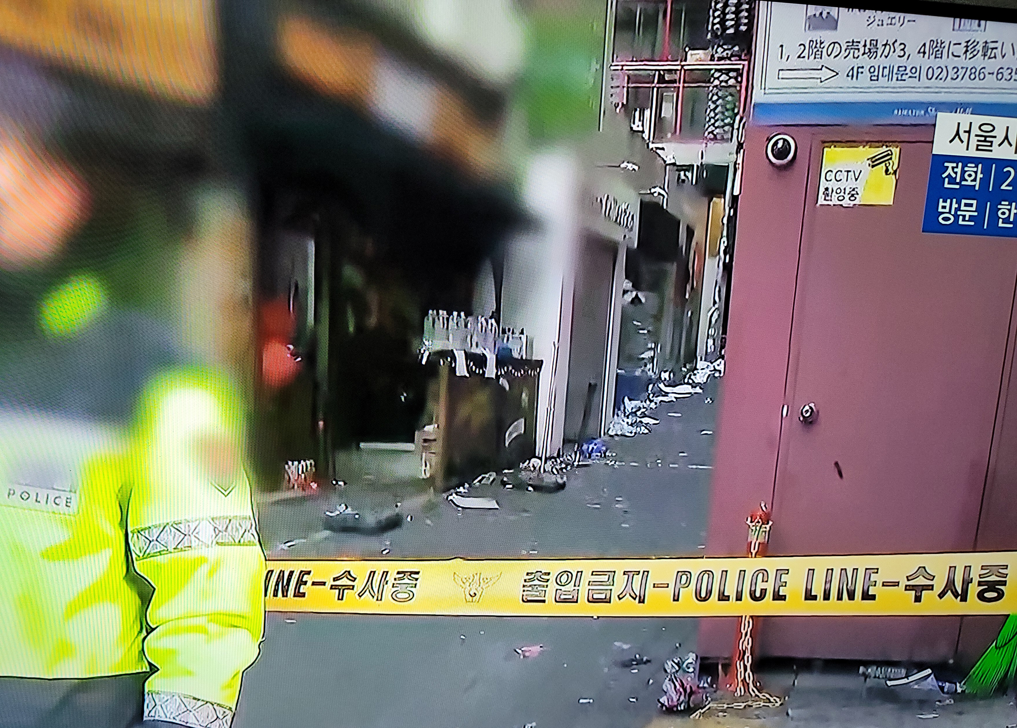 사진과 같은 좁고 비탈이 진 골목길안에 10월 29일 핼러윈 D-2DAY 행사에서 이곳에 몰린 인파는 무려 10만명에 육박한다고 한다. 3년만의 노마스크 행사로 핼러윈의 기분을 내려고 갖가지 분장을 하고 나온 20대 젊은이들, 특히 여성들이 집중적으로 압사를 당하고 사망을 당했는데 수 많은 인파의 대열중에서 한 명이 쓰려지면서 오도가도 못하게 끼여있던 인파들이 도미노현상처럼 연달아 쓰러지면서 사람들이 겹겹히 쌓이는 참사가 일어난 것이다.