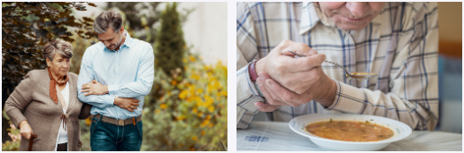 증상은 손을 떨거나, 보행상의 불편함( 질질 끌며 걷는등 ), 수면을 잘 이루지 못함, 자세가 불안정함등의 가시적인 경과가 눈에 띈다. 파킨슨병은 뇌간에 있는 뇌흑질의 도파민계 신경에 이상이 생김으로서 동작에 장애를 일으킨다. 파킨슨병의 원인으로는 환경적인 요소들 ( 독소 )과 미토콘드리아의 이상, 뇌에 불필요한 단백질이 쌓이는등의 원인등으로 유발되는 것으로 연구되고 있다.